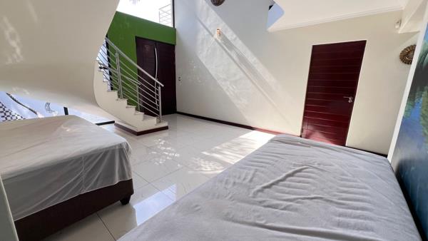 One spacious bedroom with built-in cupboards and a full guest bathroom downstairsideal for visitors or elderly family members.