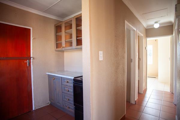 The property features three generously sized bedrooms with built-in cupboards, offering ample storage and space for family living. The one and a half bathrooms ensure practicality for busy mornings, while the kitchen is designed for everyday functionality and easy meal preparation. The lounge area creates a warm and inviting atmosphere, ideal for relaxation or entertaining guests.