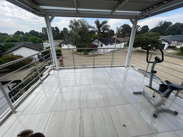 Discover this inviting four-bedroom, three-bathroom residence nestled in the established suburb of Ormonde, Johannesburg. Presenting a welcoming kerb appeal, the two-story property features a classic white and terracotta exterior, complemented by a large, decorative brick-paved driveway leading to an attached single garage. Visible security features, including burglar bars and security gates, provide enhanced peace of mind for residents.