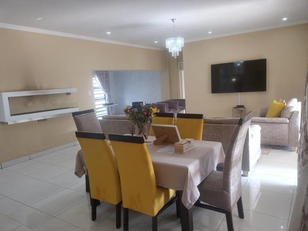 Enjoy two spacious lounges As you ascend the stairs, a stunning crystal chandelier greets you, casting a warm, shimmering glow.an upstairs pyjama lounge, offering multiple relaxation areas for the whole family. The entertainment-ready pool area is perfect for weekend braais and gatherings.