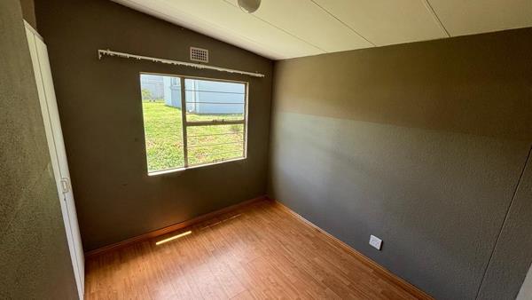 On entry into this cozy home you are greeted by an open plan kitchen and lounge area. The lounge is spacious with a tiled floor that leads to the kitchen. The kitchen has tiled floors with space for a fridge and appliances. The kitchen also has built is cupboards. The bedrooms have big windows that provides you with natural light, wooden floors and as well built wardrobes. The unit has a fully tiled sparkling bathroom.