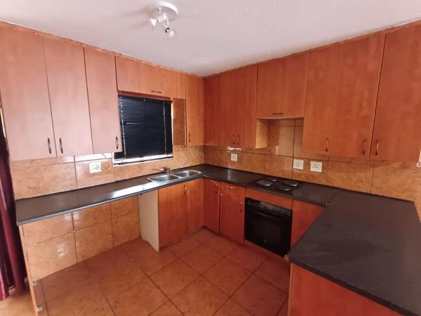 This unit in a neat complex has 2 bedrooms, a full bathroom, open plan lounge, dining and kitchen, 24 hour security, burglar bars, auto gates, electric fence, intercom, parking, visitors parking, swimming pool and clubhouse.