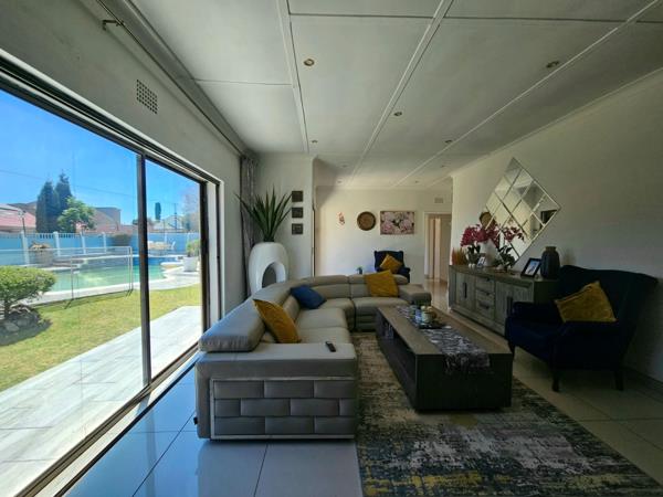 Enter this property and you are immediately bowled over my the lovely garden and large swimming pool area. As you enter this neat home you are welcomed by a lounge, open plan dining area and an ultra modern and fitted kitchen.