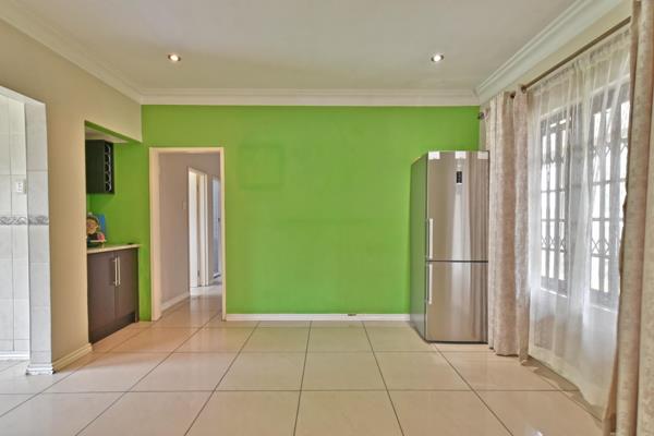 The functional kitchen leads to the diner and lounge area with wooden framed glass sliding doors flowing to the tiled patio area.