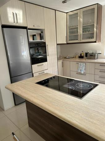 The modern kitchen is a highlight, featuring sleek finishes and ample storage, making meal preparation a pleasure. For those with pets, this duplex is