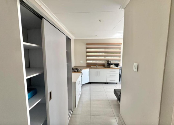 This home offers three spacious bedrooms with built-in wardrobes, wooden flooring, two full luxurious bathrooms of which one is an onsuite to the main bedroom and a guest toilet. The stylish kitchen which is the heart of this home has a scullery with a washing machine and dishwasher connection. An open-plan dining room and lounge area lead into an enclosed entertainment area with a fitted bar and braai area.