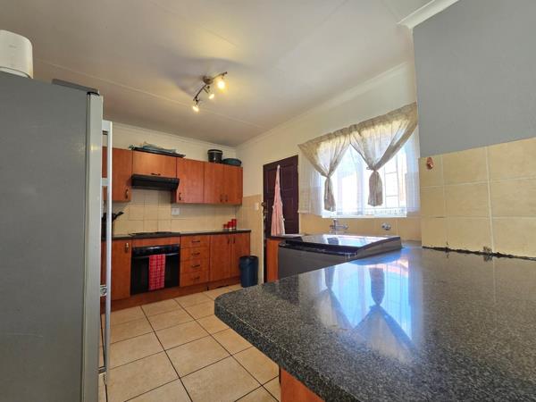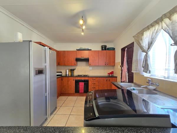 All three bedrooms are bright and tiled, offering low-maintenance living. The main bedroom includes built-in cupboards, while the additional rooms are perfect for kids, guests or a home office. The home includes two bathroomsone fitted with a bathtub and the other with a showerproviding practical flexibility for family living.