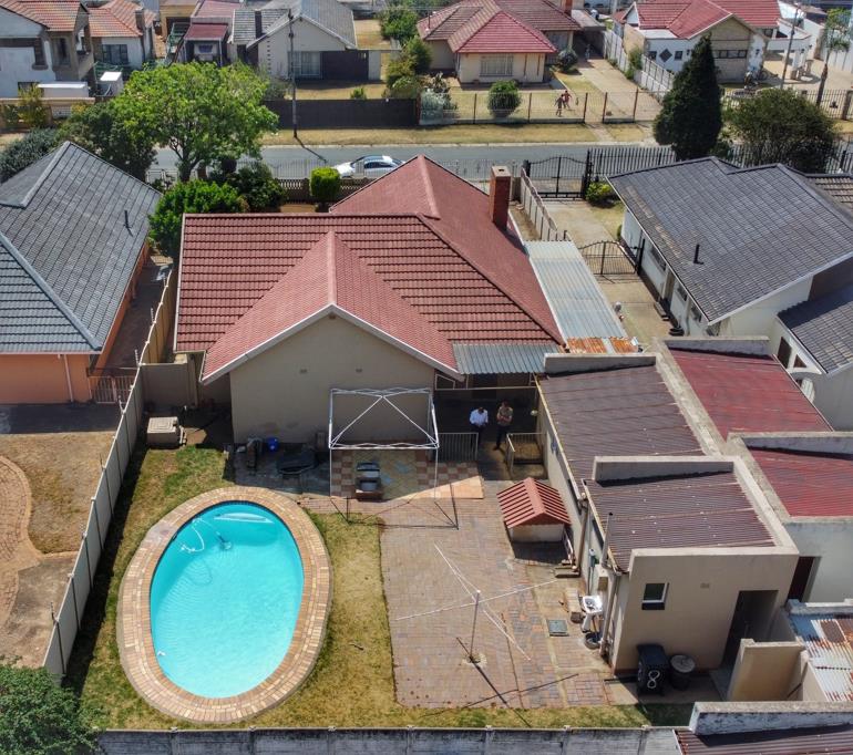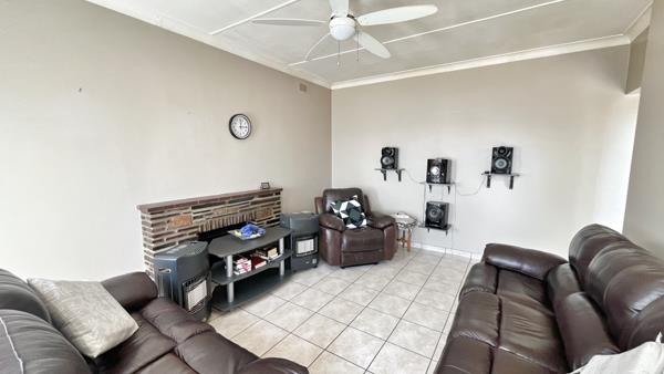 Step into the spacious lounge, complete with a ceiling fan and cozy fireplace, leading into the dining room and stunning kitchen. The kitchen boasts loads of cupboard space, eye-level oven, hob, extractor fan, and a separate scullery with space for your washing machine.