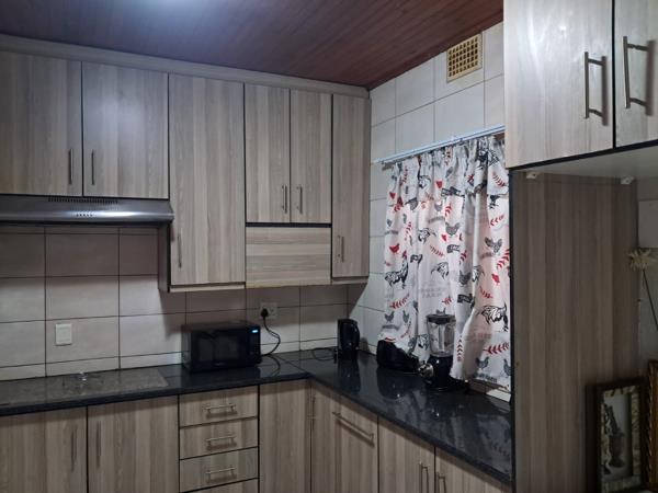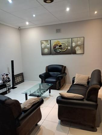 Lovely 3-bedroom home with 2 bathrooms, tiled lounge and kitchen with modern cupboards and granite tops, situated close to all amenities. Outside garden with swimming pool (needs maintenance tlc), driveway and garage with space for 4 vehicles. Well-secured with burglar bars, security gates and palisade fence. Renovator''s dream!