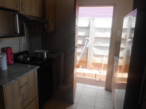 On offer this three bedroom house that is priced to go quickly, comes with a bathroom that has a bathtub and separate toilet, a big dinning room that is near the kitchen with its own built-in units. The outside has space for you garden should you want to grow anything, the yard is paved all over and is big enough for three to four cars depending on the sizes of the cars. It is located in a central space in Sky City between the Shopping Mall and The Sky City Royal School. For more information do not hesitate to contact me or whapp me.