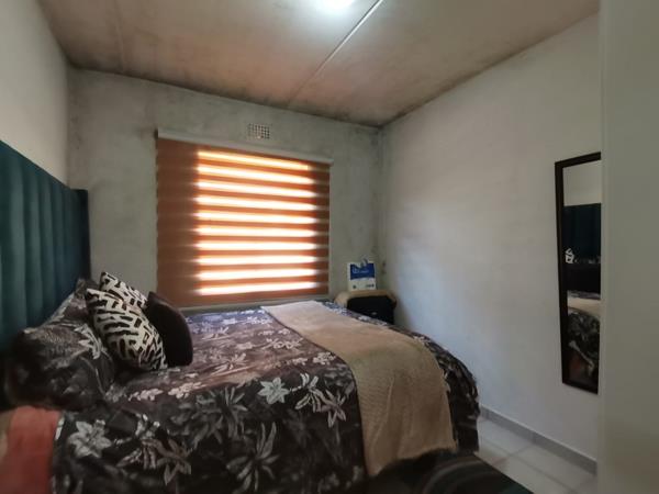 The ground floor unit offers an open plan kitchen and lounge area, 1 bedroom and 1 bathroom. Open parking space and a solar-Powered Geyser - Save on energy costs. The Estate offers a dedicated childrens playground Convenience to Sky City Mall, filling station, private school, and quick access to the R59 freeway and 24-hour security, modern living, and a vibrant community atmosphere.