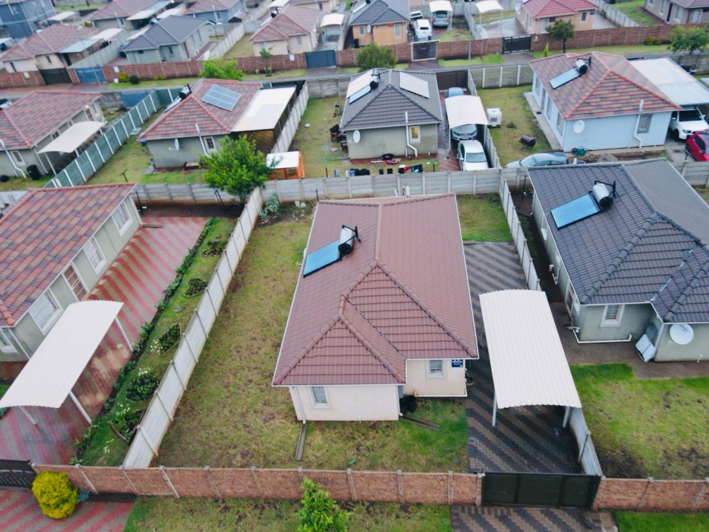 Discover this inviting 3-bedroom, 2-bathroom residential property located in the established suburban area of Sky City, Alberton, South Africa. This single-story home, spanning 80.00 sqm on a 368.00 sqm erf, presents a practical and comfortable living environment, ideal for modern families or first-time buyers. The exterior features a light-colored finish and a tiled roof, complemented by a paved driveway and a convenient carport, offering ample parking for up to five vehicles.