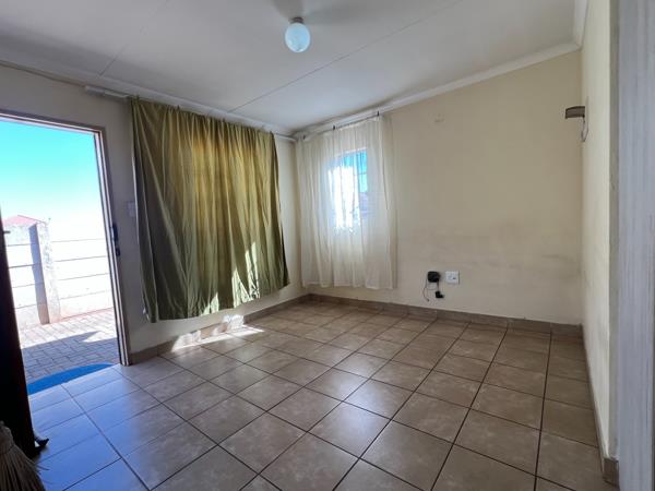 Inside, the home features three well-proportioned bedrooms, a neat bathroom with a separate toilet for added convenience, and a functional kitchen complete with built-in cupboards. Modern touches like a solar geyser and a prepaid electricity meter offer both sustainability and control over utility usage.