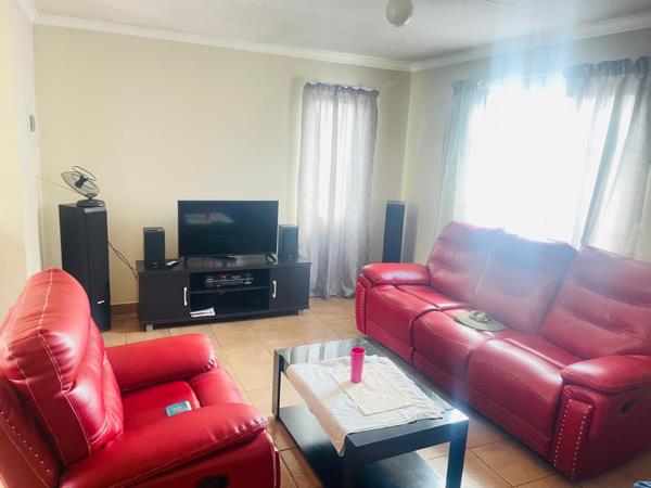 A spacious 3 bedroom house offers you a kitchen with a single cupboard and a double sink, an open plan lounge, main bedroom with en-suite (shower, toilet and basin) and a family bathroom with toilet, bath tub and basin. Interior and exterior is plastered and painted. Property is not paved and secured with a precast wall. This property is ideal for family living., It''s a must have.