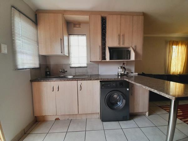 Beyond the interiors, the property extends its allure with well-maintained paved outdoor areas and a charming small garden. Security is paramount, with a fully fenced perimeter, access gate, burglar bars, and the assurance of 24-hour security. This home is thoughtfully equipped with a solar geyser for energy efficiency and is fibre-ready. Additional conveniences include three dedicated parking spaces, a laundry area, storage, and the property is wheelchair friendly and pet-friendly.