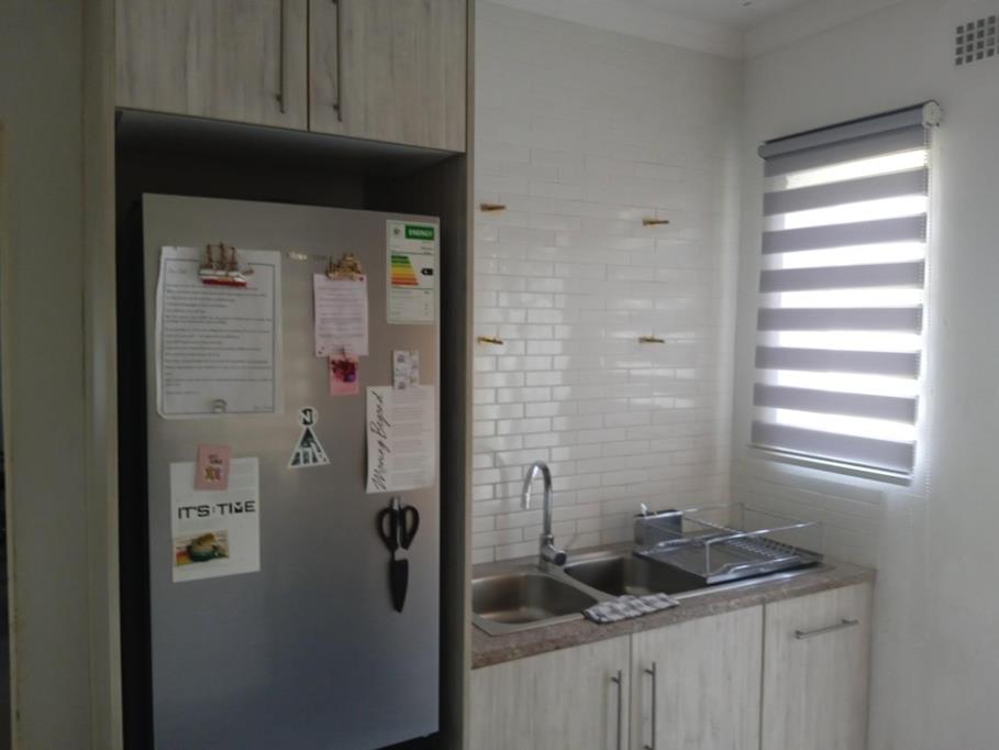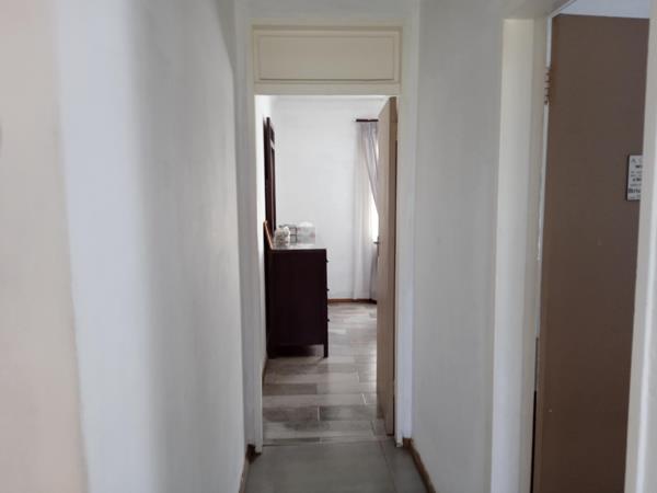 Nestled in the suburban heart of South Hills, Johannesburg, this property offers convenient metropolitan living. The residence presents a neat kerb appeal with a freshly painted exterior and a new-looking corrugated metal roof. A large covered carport provides expansive parking, complemented by a paved driveway and three garages, ensuring ample space for vehicles. The front features a small, low-maintenance lawn, while the rear boasts a spacious, relatively flat backyard with a functional clothesline and garden space, ideal for outdoor activities.