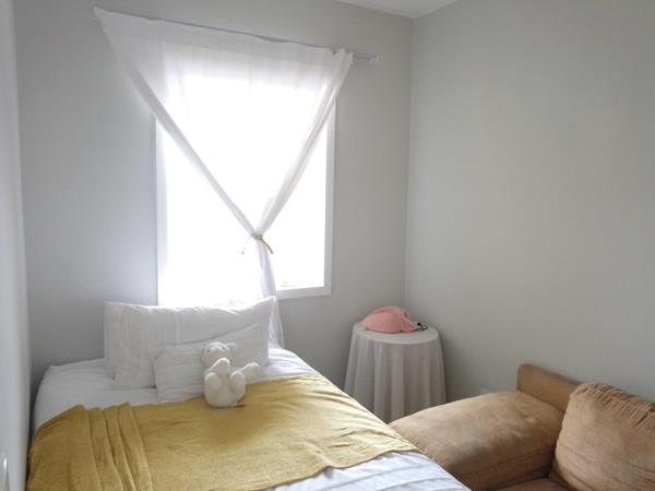 The second bedroom has not been installed with built-in cupboards, but will comfortably fit a double bed when installed.