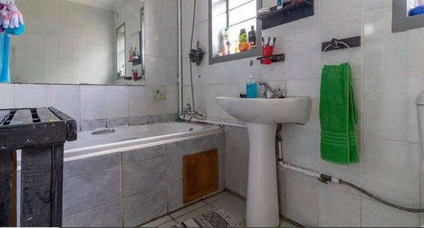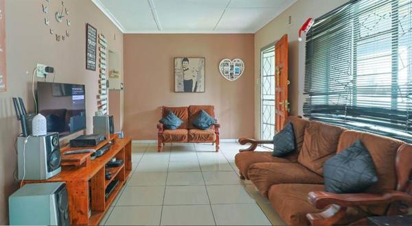 Step inside to find a tiled lounge that seamlessly transitions into a spacious dining area and cozy family room, ideal for hosting gatherings or enjoying quiet family evenings. This home features three generously sized bedrooms, two adorned with elegant laminated flooring and one cozy carpeted retreat, all equipped with built-in cupboards for ample storage.