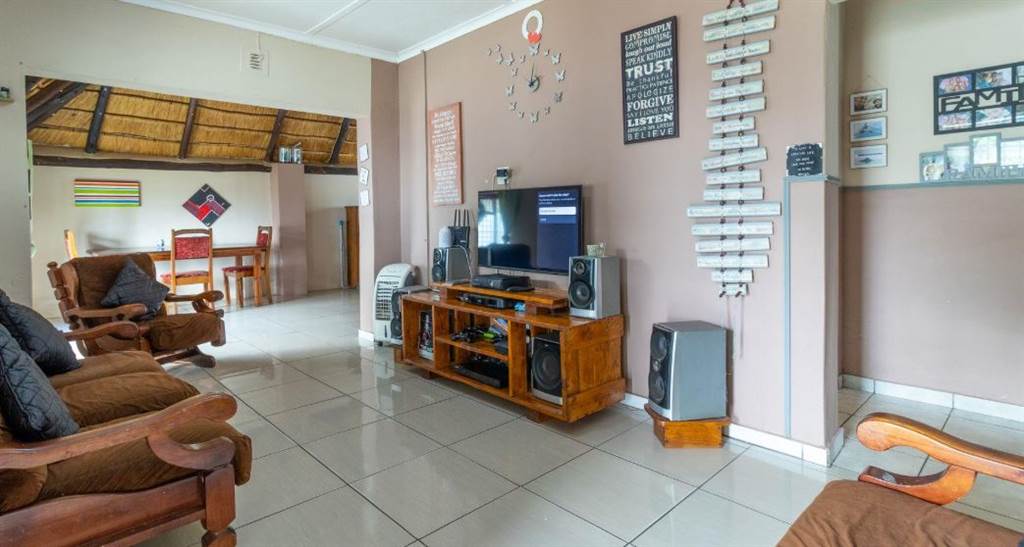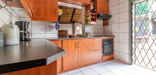 Offering additional space for guests or potential rental income, the fully tiled one-bedroom flatlet includes a kitchenette, a combined living area, and a bathroom. The property also features separate domestic quarters with a toilet, currently used as a laundry and storage room, ensuring every aspect of daily living is covered.