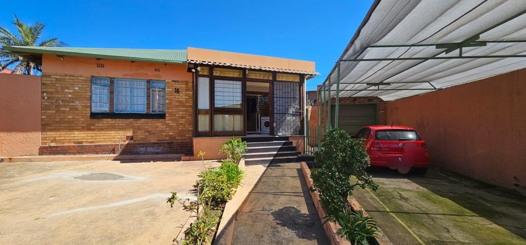 The enclosed front patio, secure with burglar bars and a security gate, provides added peace of mind. The paved driveway leads to a tunnel garage with space for two cars, along with a double carport and extra open parking for two more vehicles. The well-maintained garden offers a tranquil outdoor space for relaxation or activities.