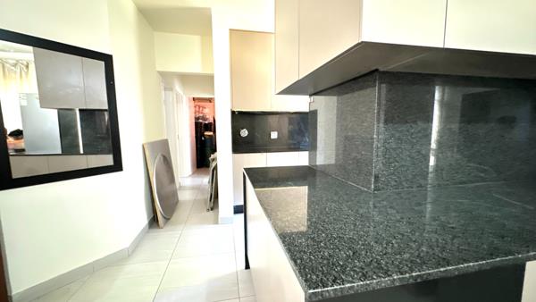This property boasts a spacious open-plan design, allowing for effortless flow between the living, dining, and kitchen areas. The unit is adorned with ultra-modern large tiling throughout, creating a sleek and contemporary atmosphere. The kitchen is a true highlight, featuring quartz countertops, ample built-in cupboards, and a contemporary design that will delight any home chef. The unit offers three generously sized bedrooms, each equipped with built-in cupboards and stylish tiling, providing both comfort and ample storage. The bathroom is equally impressive, with new, sleek tiling, a bathtub, showerhead, toilet, and basin, all designed with modern living in mind. Natural light floods the unit, enhancing the bright and airy feel of the space. With front and back entrances, this home offers easy accessibility and convenience. The unit comes with two allocated parking bays, and there is plenty of visitors'' parking available within the complex.