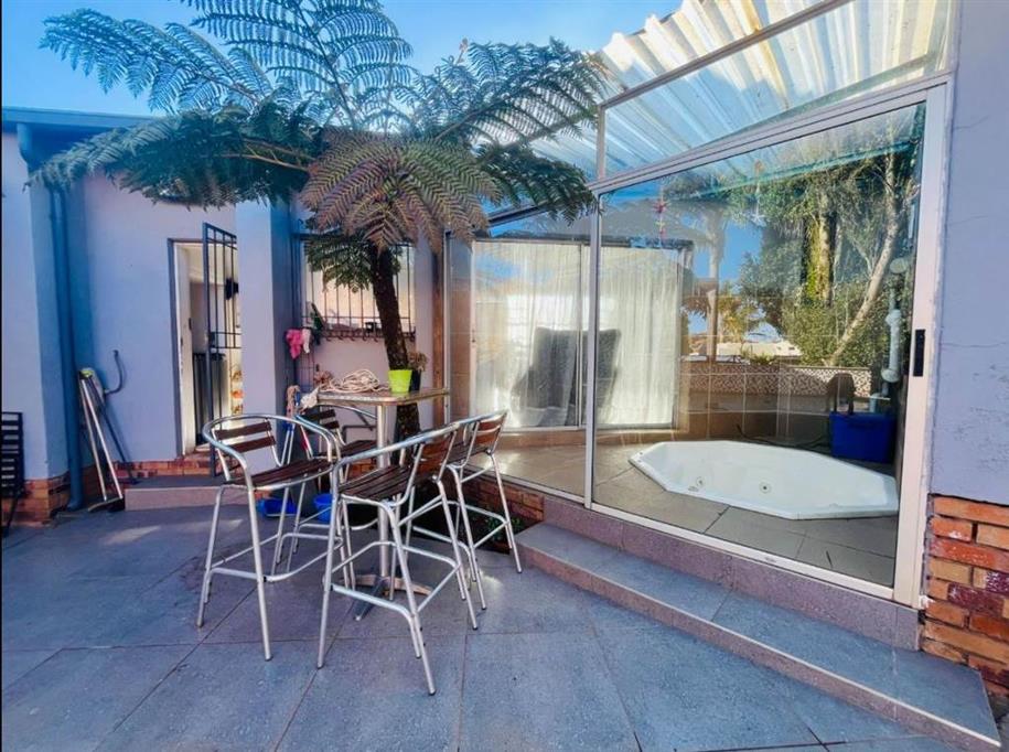 Step outside to a covered patio with a built-in braai, overlooking a sparkling pool and lush garden, your own private oasis for weekend gatherings or quiet evenings under the stars. The paved front exterior adds a clean, low-maintenance touch, and the property is fully fenced for privacy and security.