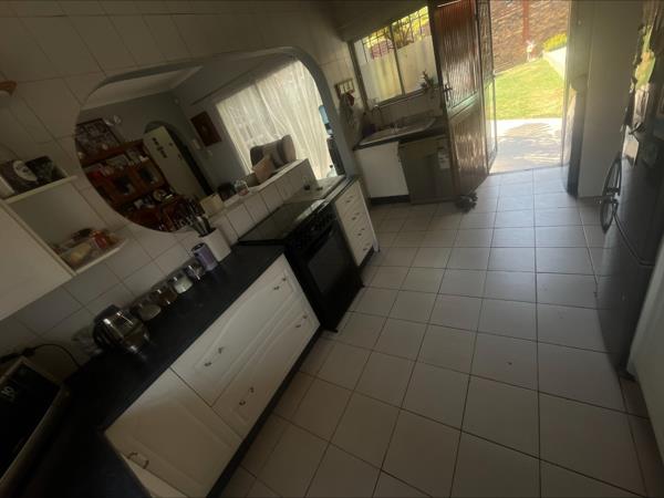 Looking for a house that ticks all the boxes? - then this house is for you. It features four spacious bedrooms with built-in wardrobes and two bathrooms one of which is an onsuite bathroom to the main bedroom with its own jacuzzi bath. Each bathroom has a bath, a shower, basin and a toilet. The kitchen is fully fitted with modern finishes and has ample cupboard space for all your appliances and utensils, it also includes a laundry area and storage room/walk-in pantry. The lounge has an open plan feel with a spacious dining room area in the corner and looks out onto a well maintained garden and entertainment area with a sliding door.