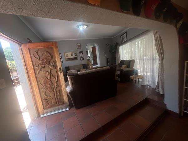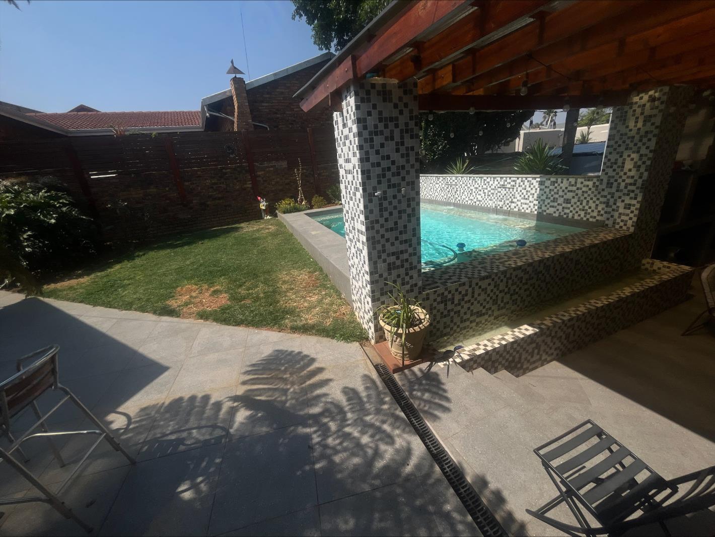 Outside the well maintained garden surrounds the an entertainment area which features a braai stand with a sparkling swimming pool for your enjoyment and relaxation. There is also an entertainment area which features a bar with a snooker table.