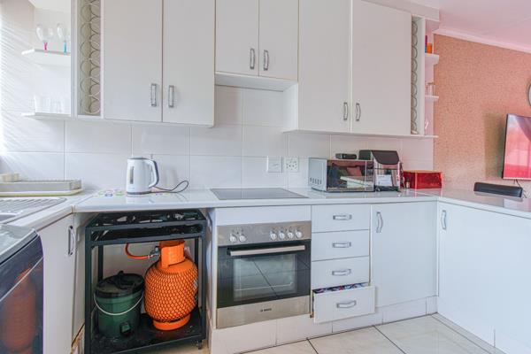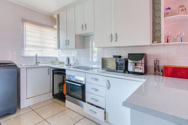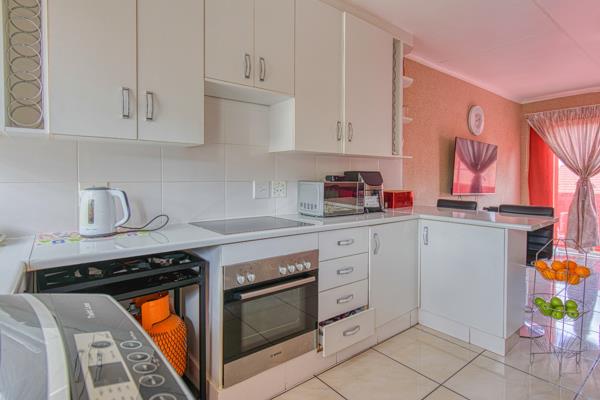 Discover comfortable living in this well-appointed 2-bedroom apartment, ideally situated within a secure complex in the suburban heart of Suideroord, Johannesburg. Spanning 61 square meters, this unit offers a functional and inviting open-plan layout designed for modern convenience. The living area seamlessly integrates with a contemporary kitchen, featuring ample white cabinetry, an electric stovetop and oven, and a practical breakfast bar that doubles as additional workspace or casual dining. Tiled flooring extends throughout the living spaces, ensuring easy maintenance and a cohesive aesthetic.