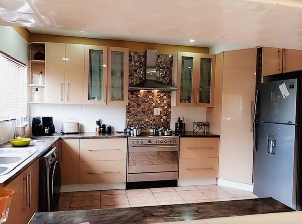 This home offers three spacious bedrooms with built-in wardrobes, well tiled flooring, and three luxurious bathrooms one of which is an onsuite to the main bedroom and a guest toilet. The stylish kitchen is the heart of this home and the scullery has a washing machine and dishwasher connection.