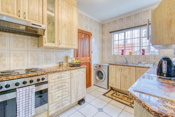 The cozy family room and dining room flow effortlessly into the stunning modern kitchen with sleek granite tops and loads of cupboard space.