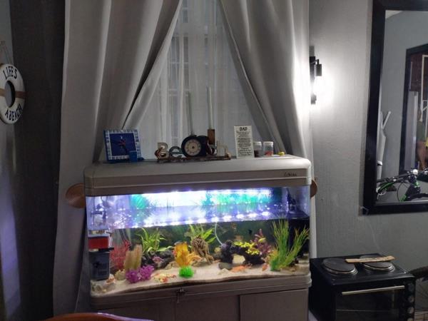 Consisting of a spacious Open-Plan Lounge and Dining area, leading to a Private Garden, perfect for evening Braais and entertaining or relaxing after a long day. Open Plan Kitchen with Built in Cupboards and a Gas Stove, Hob and Under Counter Oven and Space for Appliances.