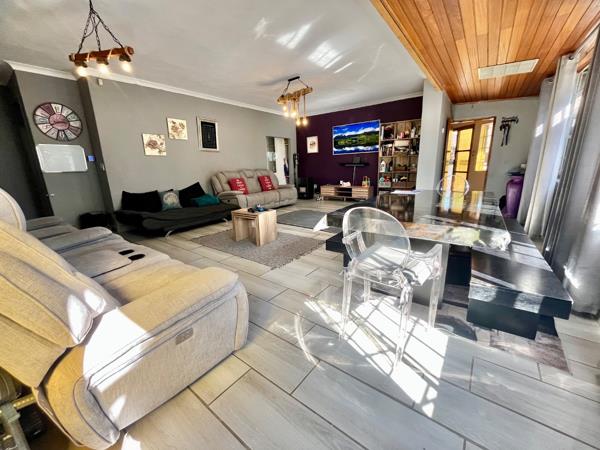 From the kitchen, step out to a covered patio overlooking a sparkling poolyour private entertainment zone for sunny weekends and evening braais.