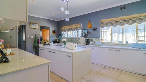 As you enter, you''re welcomed by an expansive living room seamlessly flowing into an open-plan dining area perfect for entertaining. Adjoining this space is a beautifully fitted kitchen featuring Caesarstone countertops, a center island, ample cupboard space including glass display cabinets, a gas hob, and a separate scullery for added convenience.
