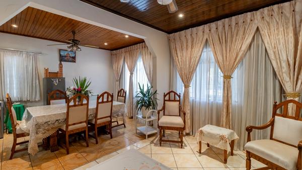 Additional highlights: There are 2 separate flatlets - One offers 1 bedroom with built-in cupboards, bathroom and kitchen. The second also offers a kitchen, dining area and 1 bedroom. There is a third room and outside bathroom which can be used as staff quarters...... An added bonus of a a huge workshop area and 2 carports for 5 cars - Ideal for the car lover!!