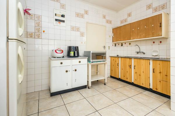 The large kitchen has ample melamine BIC''s and table top surfaces with a 4-plate hob stoveoven and space for large fridge and additional appliances. A double sink and connections & space for any type of washing machine or dish-washer provides flexibility.