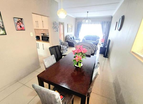Main House: Spacious 4-bedroom, 3-bathroom home with a welcoming entrance and open-plan lounge and dining areas. Modern tiles and finishes throughout, and a fully fitted kitchen with built-in cupboards, stove, and hob. The well-sized bedrooms have built-in wardrobes, with one en-suite bathroom and an additional guest toilet.