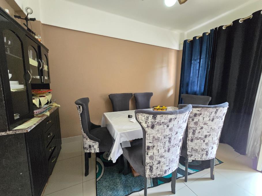 The apartment features a large bedroom fitted with built-in cupboards, providing plenty of storage. The kitchen is well-appointed with ample cupboard space perfect for those who love to cook. The bathroom setup offers added practicality, with the toilet separate from the bath and basin, allowing for guest convenience.