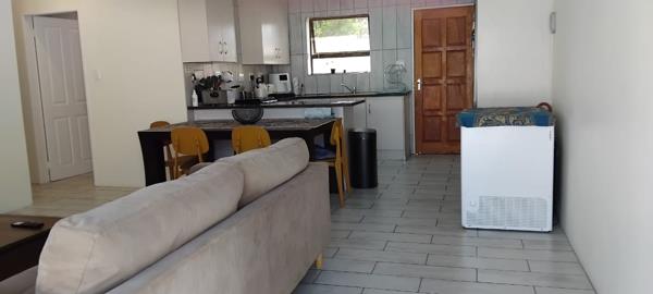 This inviting home offers a perfect blend of comfort and style. As you walk through the front door you are welcomed into a spacious open plan lounge and dining area that is perfect for family gatherings and relaxing evenings. The kitchen is fully equipped with ample cupboard space, a stove and large countertops making it ideal for cooking and entertaining. The three bedrooms are generously sized with wardrobes providing plenty of storage. The bathrooms are modern featuring both a bath and a shower.