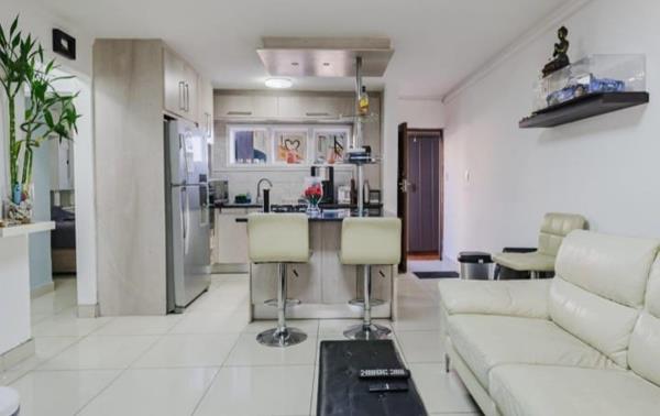 Discover modern living in this inviting two bedroom, one bathroom residence located within a secure complex in Winchester Hills, Johannesburg. The interior boasts a contemporary open-plan design, seamlessly connecting the living area with a sleek kitchen. This functional space features a central island with an integrated hob, built-in appliances, ample light wood cabinetry, and dark granite countertops, all complemented by clean tiled flooring and abundant natural light.