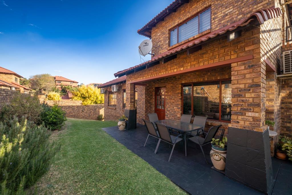 Outdoors, the home truly comes into its own. A large wrap-around garden invites moments of quiet reflection or lively gatherings, while a covered patio extends the living space into the natural surrounds. The pièce de résistance is a generous entertainment balcony, perfectly positioned to capture magnificent sunset vistas ideal for alfresco dining or sundowners with guests. Additional features include a double garage, 24-hour security within the complex, and a reliable back-up water supply offering both convenience and peace of mind. With its elevated position, versatile spaces, and elegant finishes, this home offers an exceptional lifestyle opportunity in one of Johannesburg Souths most desirable neighbourhoods.