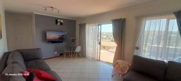 Offering quality finishes and functional layout with a spacious open plan lounge creates a welcoming atmosphere while beautiful floor tiles flowing seamlessly throughout the home enhancing its modern appeal. The modern kitchen with granite countertops and plenty of space is perfect for preparing your family meals. The open plan lounge leads to a sizable balcony to relax and enjoy your serene sanctuary on the top floor with magnificent views.