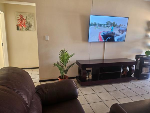 This amazing home boasts three cozy bedrooms with built-in modern melamine wardrobes. All bedrooms come complete with wooden themed tiles which boast a cozy and warm vibe. This property is perfect for growing families or professionals. This home comes with a modern styled kitchen with an electric stove, hob and ample cabinet space seamlessly connected to a spacious dining room and open plan lounge area with views of the gorgeous outdoor area. The home is well tiled and walls are immaculate painted with welcoming earth tones. The whole property is well sized and seasoned by comfort.