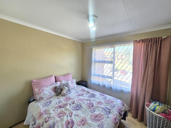 The kitchen boasts melamine cupboards, providing both functionality and style, while the open-plan lounge and dining room create a welcoming atmosphere, ideal for relaxation and entertaining. Step out onto the balcony, where you can enjoy outdoor dining, thanks to the built-in braai, or simply unwind with a beautiful view.