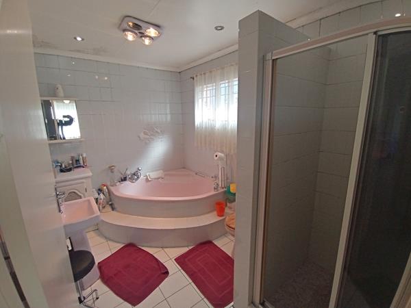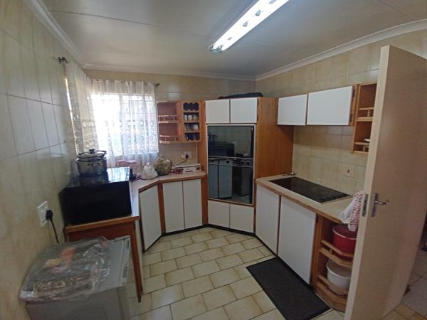 The home boasts two inviting lounges and a well-appointed dining room, creating an ideal setting for both relaxation and entertaining. The neatly kept kitchen is equipped with abundant cupboard space, providing practical storage solutions.
