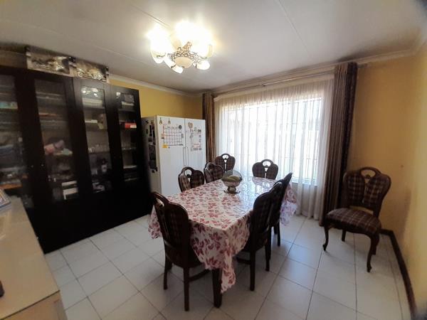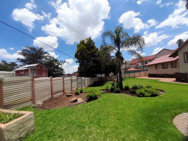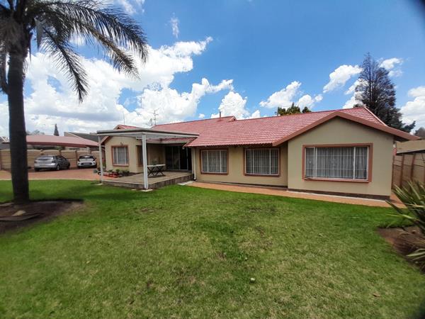 This charming 3-bedroom, 2-bathroom residence is nestled on a generous 1085 sqm erf in the desirable suburban area of Winchester Hills, Johannesburg. The property immediately impresses with its well-maintained exterior, featuring a classic red tiled roof and light-coloured walls, complemented by a lush, expansive garden adorned with mature palm trees and verdant lawns. The inviting kerb appeal sets the stage for a comfortable family lifestyle in a tranquil setting.