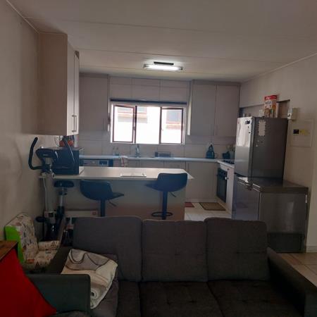 This lovely townhouse offers an open-plan lounge and kitchen, creating a warm and functional living space.