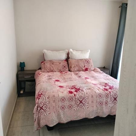 It features two well-sized bedrooms with built-in cupboards and a modern full bathroom.