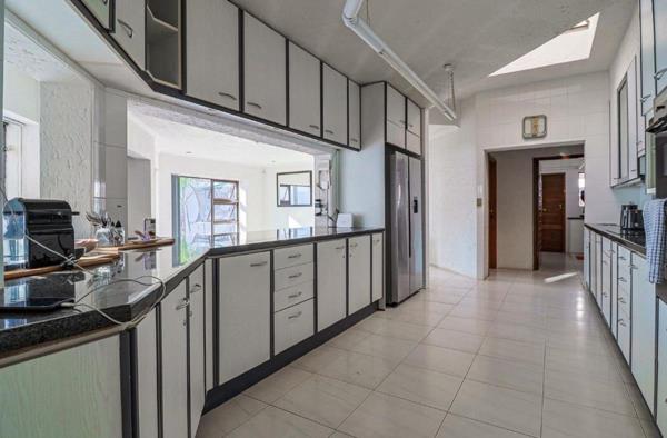 The heart of the home is the fully-equipped, modern kitchen, a culinary dream with top-of-the-line finishes, ample storage space, and a convenient separate scullery to keep your entertaining spaces clutter-free. Adjacent to the kitchen, the dining area unfolds onto a charming patio, creating an alfresco oasis that overlooks the sparkling swimming pool - your personal retreat for relaxation or hosting memorable gatherings.