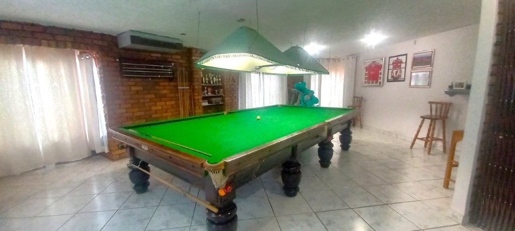 The kitchen is a culinary sanctuary, beautifully appointed with a centre island and gas cooker, a stylish breakfast nook, and extensive cabinetry that combines function with finesse. Flowing seamlessly from the kitchen, the open-plan dining area sets the tone for intimate family dinners and grand entertaining. The expansive lounge, illuminated by natural light from skylights, creates a magnificent living space, with sliding doors opening onto a private patio. A full-size snooker table extends the invitation to entertain with flair.